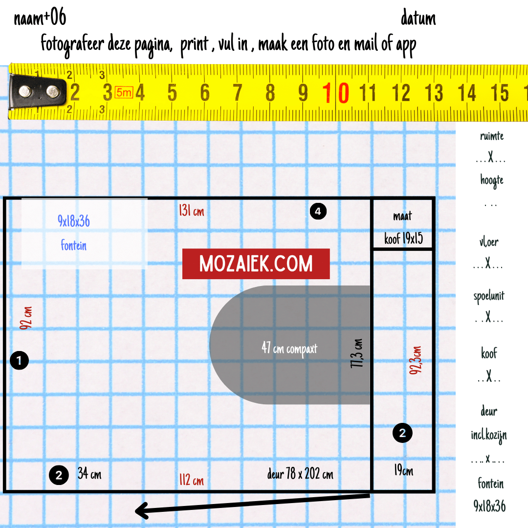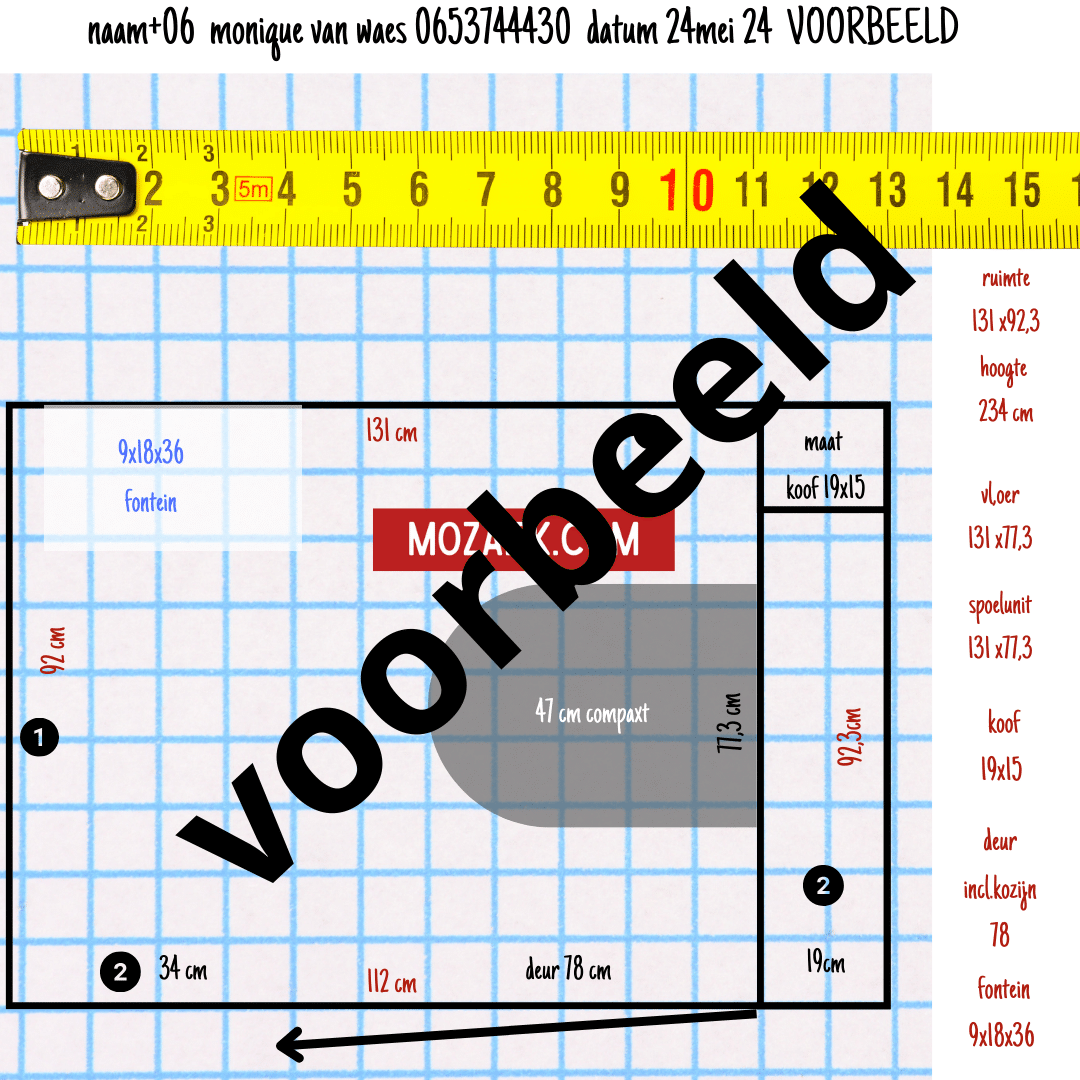 Zolang de TegelTool nog niet werkt: stuur ons een appje met uw plattegrond en afmetingen. Wij sturen een meetinstructie en maken op basis daarvan een berekening. Kijk eerst naar de kleine tabel voor de kostenraming.